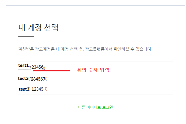 네이버 광고 아이디 - 아래 여러개의 광고 계정이 있은 경우 입력 - 없음면 공백 으로